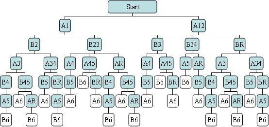 LH rule has 21 kind of model. Assume: 1st player is A, and 2nd player is B, "A1" mean's player A put move 1 with black stone, "B4" mean's player B put move 4 with white stone. "A12" mean's player B put move 1 and move 2 (one black and one white stones), "B45" mean's player B put move 4 and move 5 (one white and one black stones). "AR" mean's player A swap right of make move. "BR" mean's player B swap right of make move. |