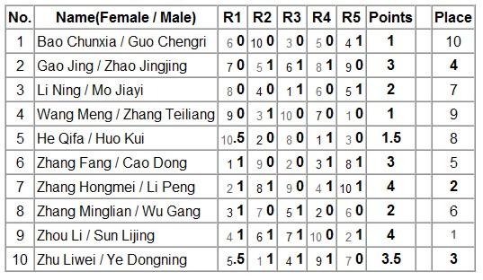 Round 3, B: Wang Meng / Zhang Teiliang, W: Zhu Liwei (a girl) / Ye Dongning. Swap, 5a=10.