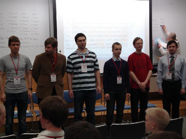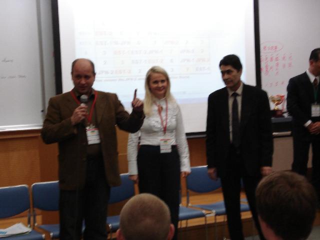 Today, 2round were held. China made a good result like a rocket. They got 8points so far, beat both Ukraina & Azerbaijan(3members) team and Japan2. Chinese taipei is also good, I think. Though they got half points(4-4), they played strong 2 team, Russia and Estonia1. As I am a leader of Japan1, first game was not good. Okabe and Ymaguchi lost against Japan2. Besides, Hasegawa almost lost. As a penarty, I decided to change members at 2nd round. Isobe and I took part. Fortunately, we all won for Estonia2.