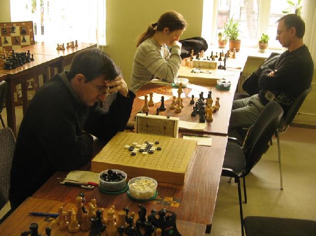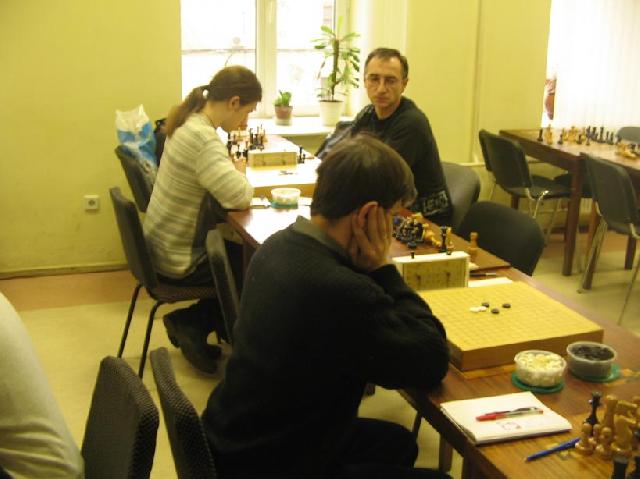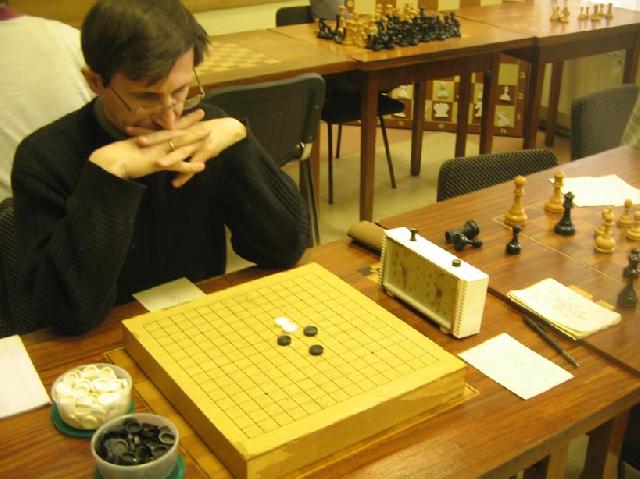 After this win I had guaranteed the first place in a preliminary group (if new participants will not be added ;)) whereas Konstantin must fight for the place in a quaterfinal. Top 4 players from a group advance to a quaterfinal. Stepan Tarasevich (you can see him at two photos) defeated sensationally Nikonov and Sirategyan and has very good chances for the second place in our group. Stepan has not a dan yet. |