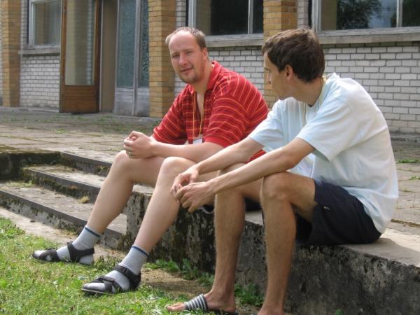 Photo Viewer Title: Ants and Kostya in Youth EC 2005 Comments: Ants Soosõrv and Konstantin Chingin sitting in front of tournament building of the Youth European Championship, Syrgavere 2005.
