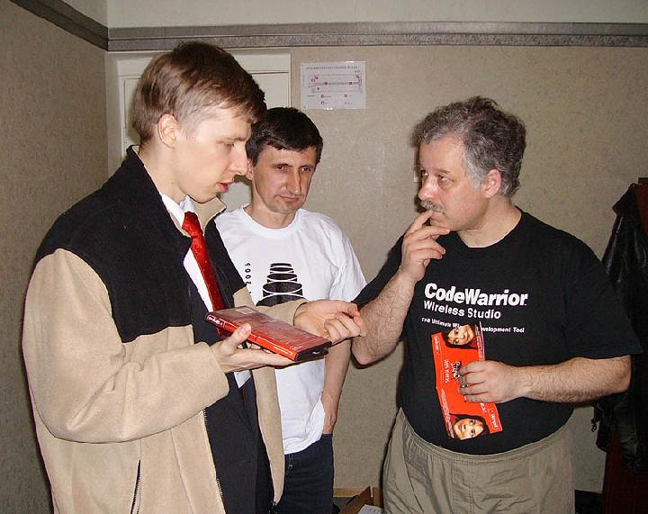 Comments: TWC-06. Ando is explaning to Pavel how to use sim-card in Estonia. Kostja is listening too.
