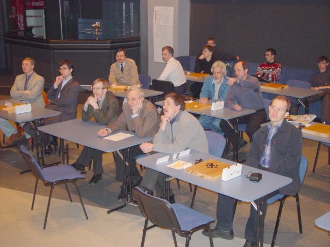 Photo Viewer Title: Players of TWC listening the lecture Comments: Lots of players are listening and watching Ando Meritee's public lecture for Online Renju Class Students. Organized during Team World Championship, Tyumen 2004. Published by Ando Meritee |