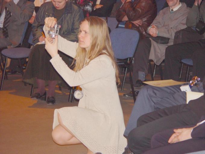 Comments: Irene Karlsson taking photos in the closing ceremony of the Team World Championship, Tyumen 2004.