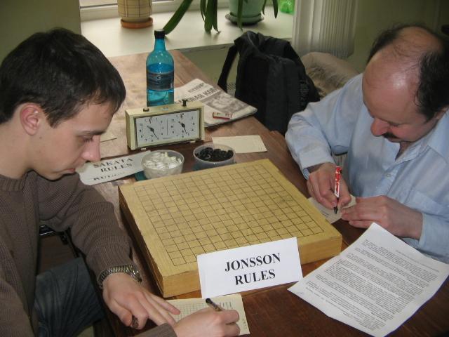 Photo Viewer Title: Jonsson rules are only remained Comments: Moscow Cup 2008. 1/4. Kazarin - Golosov. 3rd game. Jonsson rules are the only remained rules. So, the game will be played by Jonsson rules. Published by Yuriy Tarannikov |