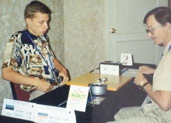Photo Viewer Title: Meritee vs Kozhin in WC 1999 Comments: Ando Meritee vs Mikhail Kozhin in the game in World Championship, Beijing 1999. Ando played 10 games as black and only 1 as white - this one! Published by Ando Meritee |