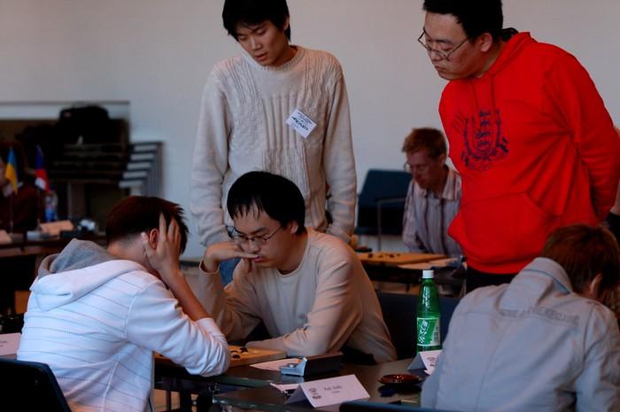 Comments: Cao Dong and Wu Di are watching their team mate Wu Hao's game against Andry Purk. Team World Championship 2008 in Helsinki