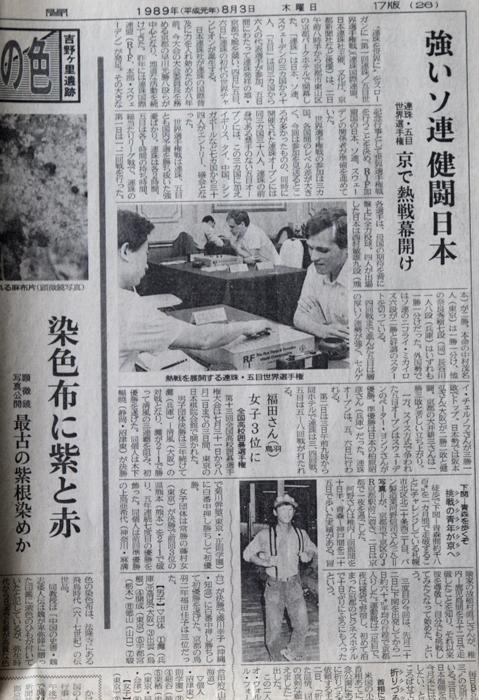 Title: The paper in Japanese newspaper about the 1st Gomoku World Championship in Kyoto, 1989Category: Tournament