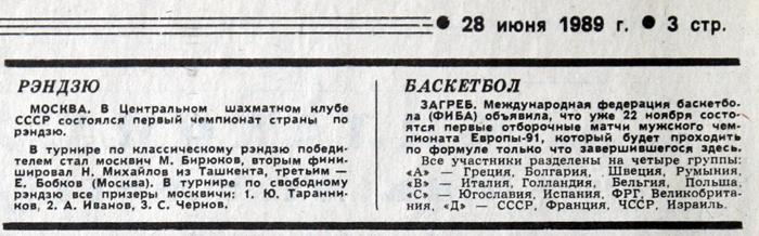 Comments: "Sovetskiy Sport", No 146 (12665), June 28, 1989, 3th page