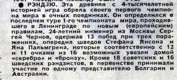 Comments: "Sovetskaya Rossiya", No 2 (9253), January 3, 1987, 4th page, section "Starts and finishes"