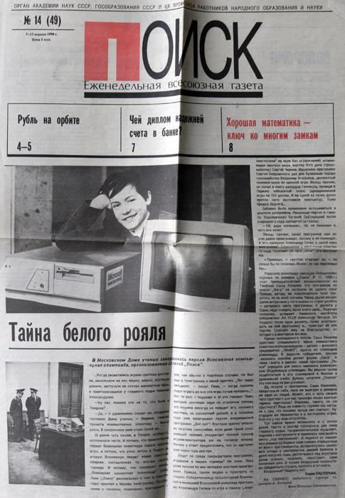 Comments: "Poisk", No 14 (49), April 7-13, 1990, 1st page