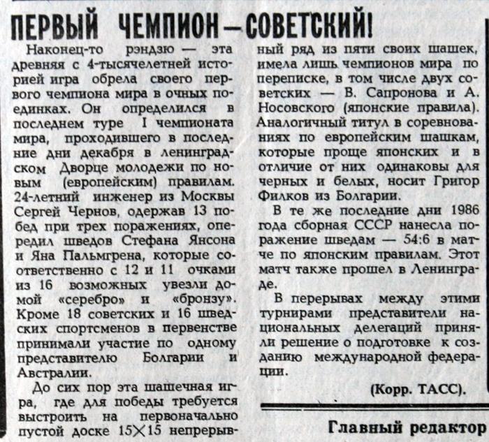 Comments: "Sovetskiy Sport", No 4 (11983), January 6, 1987, 4th page