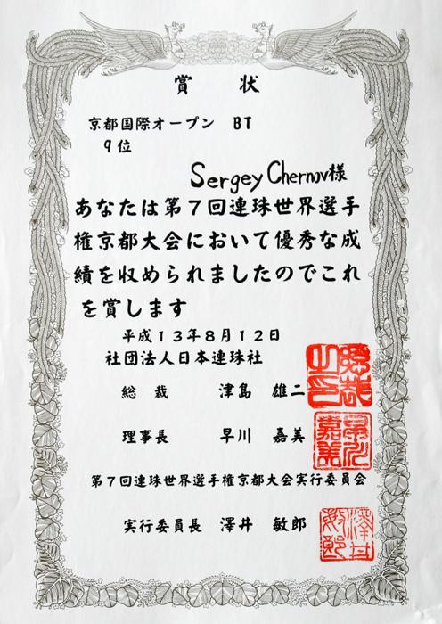 Title: Japanese certificate of Sergey ChernovCategory: Tournament