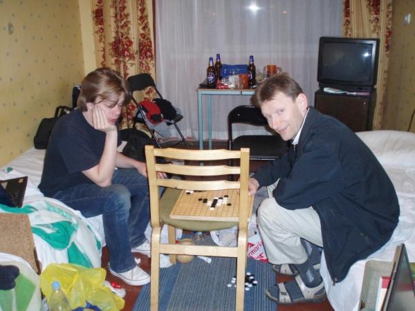 Photo Viewer Title: Joachim Gaulitz and Stefan Karlsson analysing Comments: The photo was made in the hostel room during the Team World Championship 2006 in Tallinn. Joachim Gaulitz and Stefan Karlsson are analysing the new 14th move in d11 opening. Published by Ando Meritee |