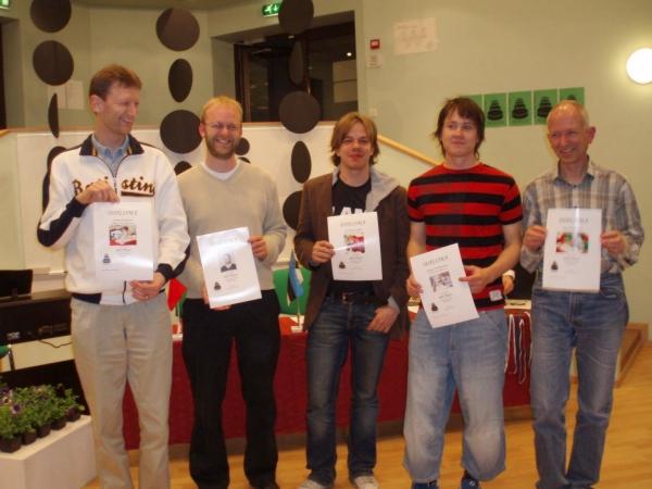 Photo Viewer Title: Swedish Team in TWC 2006 Comments: The Swedish team in the prize ceremony of the Team World Championship in Tallinn in May 2006. From left: Stefan Karlsson, Björn Eriksson, Joachim Gaulitz, Hannes Hermansson, Tord Andersson. Published by Ando Meritee |