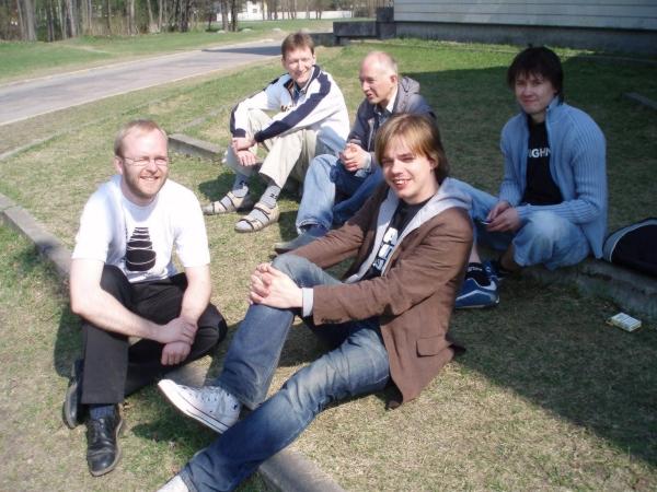 Photo Viewer Title: Swedish Players in TWC 2006 Comments: The Swedish team is relaxing in front of tournament building (Kullo Center) during the Team World Championship, Tallinn 2006. The two people in front are (left): Björn Eriksson and Joachim Gaulitz. And the back row (left): Stefan Karlsson, Tord Andersson and Hannes Hermansson. The weather is very beautiful. Published by Ando Meritee |