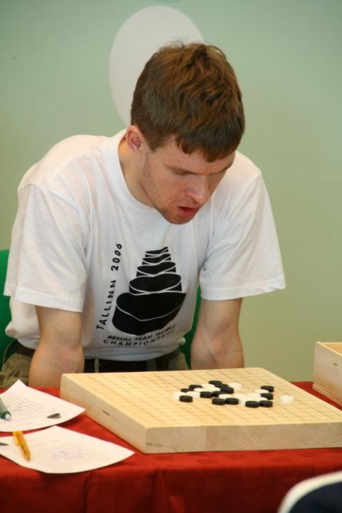 Comments: Vladimir Sushkov is thinking of how to block the black three in his game with Ando Meritee in Team World Championship, Tallinn 2006.