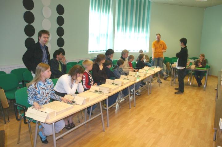 Photo Viewer Title: Okabe vs many young players Comments: During Team World Championship (Tallinn 2006) there was a special event: Hiroshi Okabe played simultaneous games against young Estonian renju players with limited time. Ants is explaining the rules to players. Published by Ando Meritee |